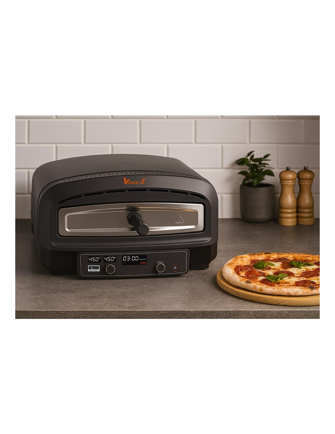 Perfetto per gli amanti della pizza, questo forno per pizze professionale elettrico con una potenza massima di 2200W garantisce risultati impeccabili in tempi rapidissimi. Con una temperatura massima di 450°C, è in grado di cuocere una pizza perfetta in soli 2 minuti, riproducendo la qualità di un forno a legna.