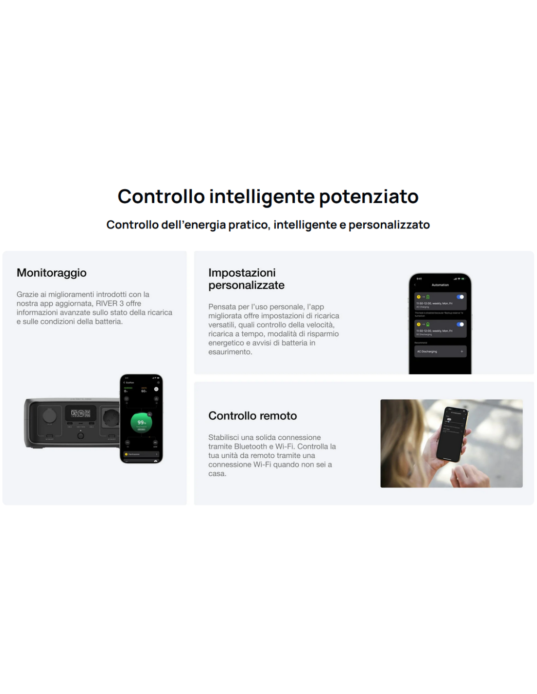RIVER 3 rivoluziona il concetto di efficienza energetica, raddoppiando il tempo di funzionamento dei dispositivi sotto i 100 W e ampliando le possibilità di utilizzo a casa e all’aperto