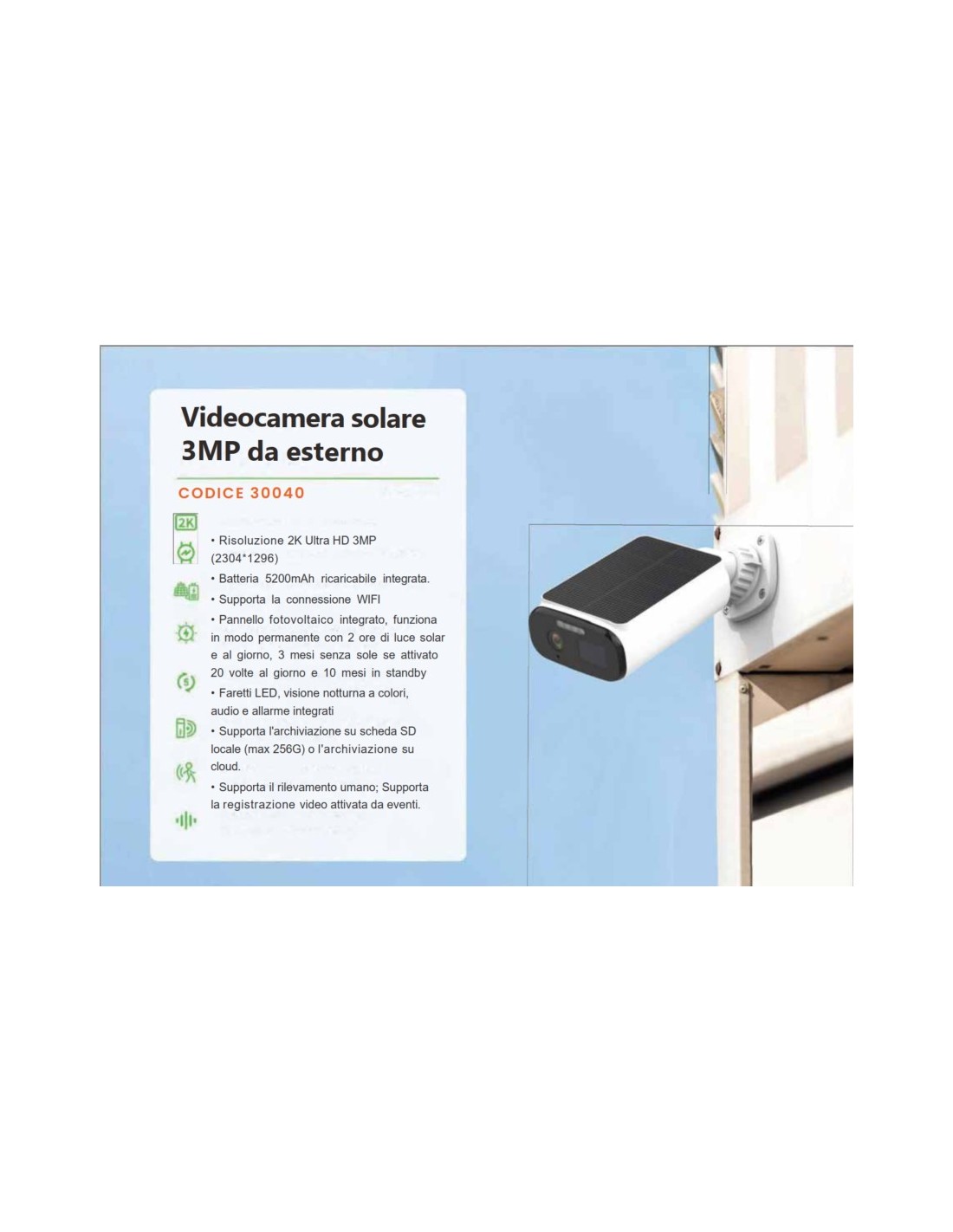 • Supporta il rilevamento umano; Supporta